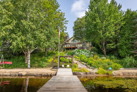 Our lakefront home boast 5 spacious rooms, cozy interiors, and breathtaking views of Lake Vernon. The property has 100 feet of sandy waterfront for sunbathing and swimming. You can soak up the sun and dine outdoors on the expansive deck with its gas BBQ. Use the private dock to boat or go canoeing and paddleboarding